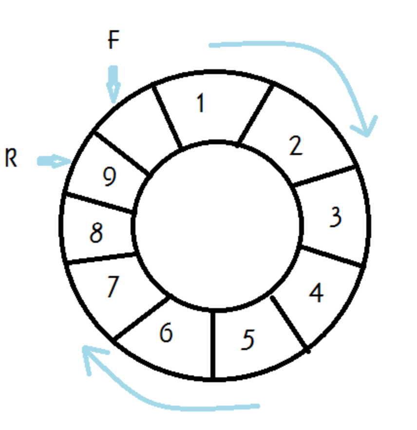 큐는 최근 삽입된 데이터 위치와 가장 오래된 데이터의 위치 두 가지를 기억해야 한다. 삽입은 최근 삽입된 데이터의 위치가 필요하고, 추출은 가장 오래된 데이터의 위치가 필요하기 때문이다.
